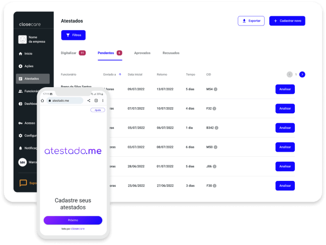 E você ainda ganha acesso a relatórios em tempo real dos atestados, conforme eles chegam.
